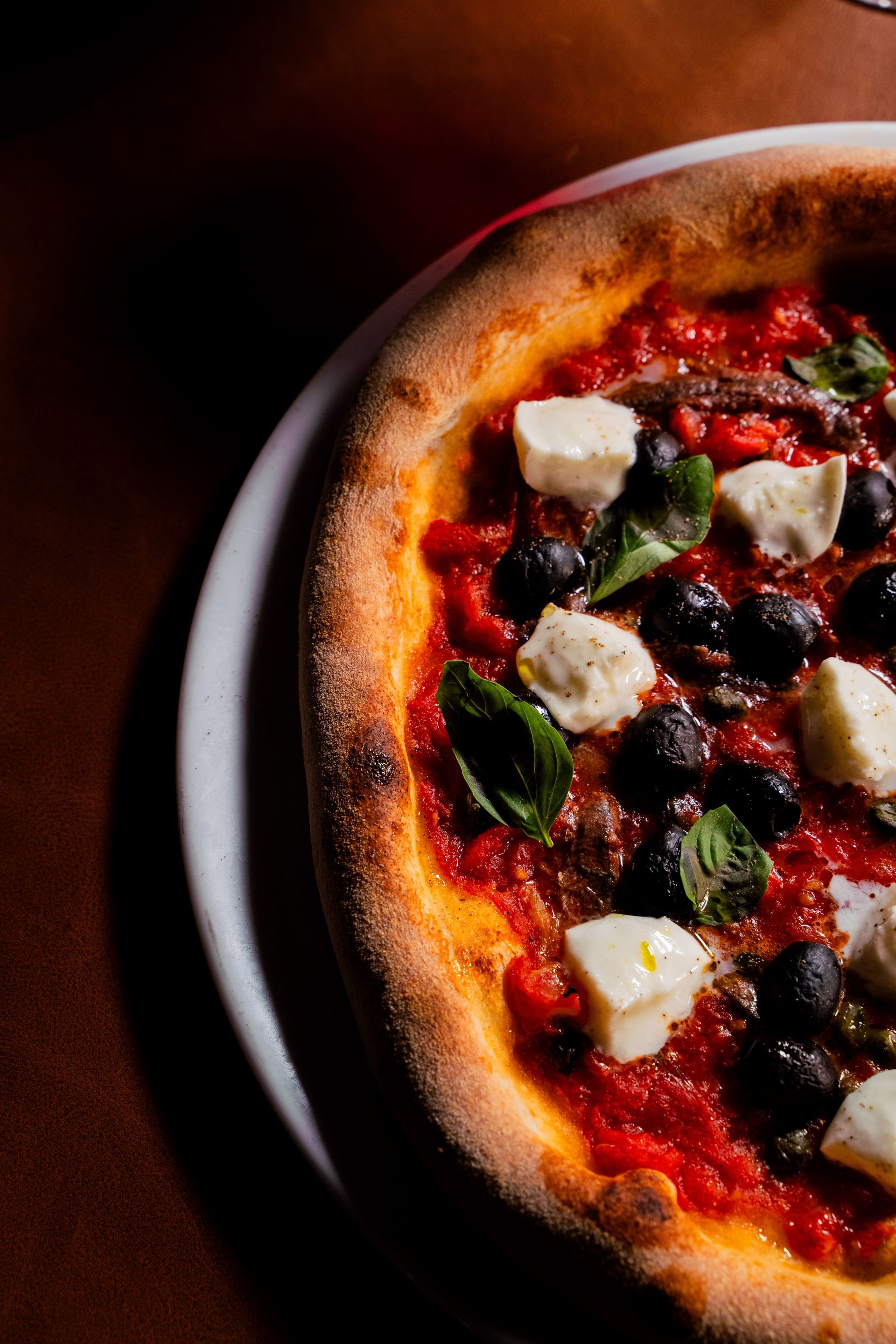 T & m, anjovis, capers, bufala, olives, garlic, fresh basil, black pepper